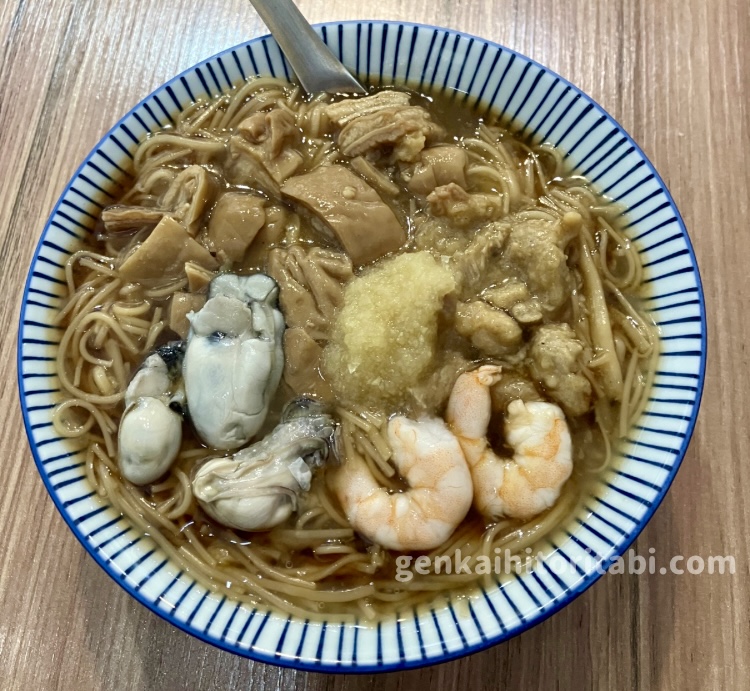 鰹出汁のとろみのあるスープに素麺みたいな細い麺を煮込んだ台湾のソウルフード。