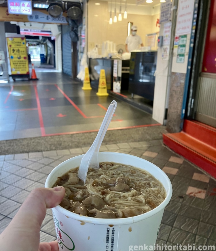 早朝7、8時頃に行ったら空いててすぐ注文できました。6月下旬とはいえ、早朝から台湾の日差しは強く、あっつい中で日本でいう煮麺を食べるのはかなりツラいものがあった。笑