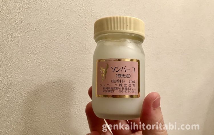 ソンバーユは馬油100%、添加物は一切使ってないので、子供にも安心して使えます。てか、オロナイン感覚で家族のあらゆるトラブルに対応できるお守り的存在。気になる臭いもなく無臭です。旅行関係なくこれは持っておきたい。心からおすすめする!
